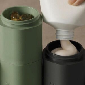 Take your everyday routine on the road with this set of leakproof, worry-free Cadence containers. Magnetized to stay together in transit, they're simple to fill with your favorite body wash and lotion. Wide openings make it easy to scoop out every drop. Magnetic tile labels keep everything organized. This modular 2-container set includes capsules, threaded twist-on lids, tiles - in other words, all the details that have made Cadence such a travel game-changer.