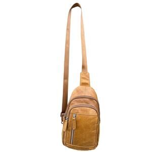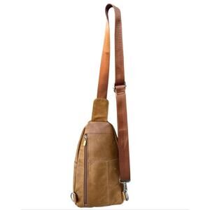 NWT Cal-Wyn Light Brown Cowhide Leather Sling Bag with Adjustable Shoulder Strap