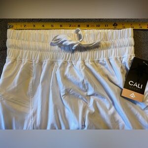 NWT Cali Sport White Activewear Joggers Elastic Waist Zippered Pockets, Sz S