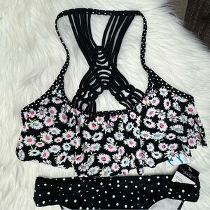 NWT California Waves Daisy Print Flouncy Bikini Set Small