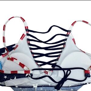 NWT California Waves USA Flag Flounce Bikini Top M Medium Juniors Lace Up Front