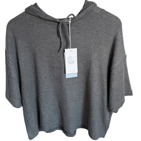NWT Calme Johnny Was XS Cozy Hooded Gray Crop tee Shirt 113926