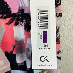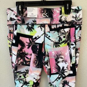 Love the super fun print on the athletic leggings by Calvin Klein. They measure 16 inches at the stretch fit waist length flat and have a 25 inch inseam.