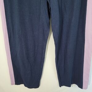 Calvin Klein AUSTYN Navy/Purple Striped Pull-On Sweatpants Size Large Side Pockets, Elastic Waist, Stretchy, Wide Leg, Relaxed Fit.
