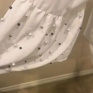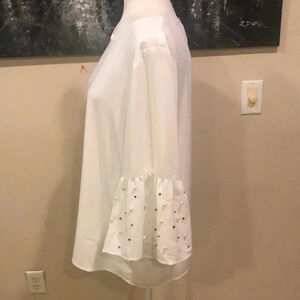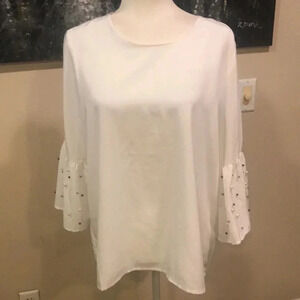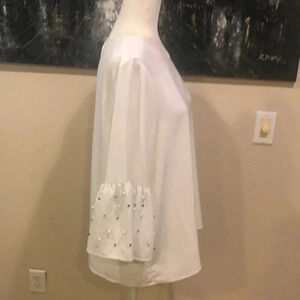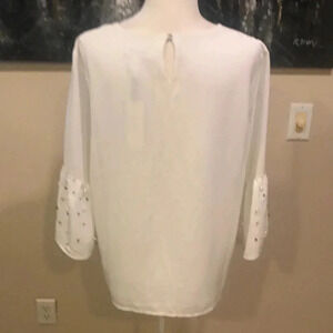 NWT Calvin Klein Alabaster Blouse with Bell Sleeves and faux Pearls-Size Large