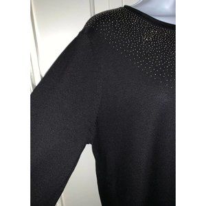 NWT Calvin Klein Atlantis Black Pique Neck Pullover Sweater Studded Sz LARGE