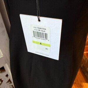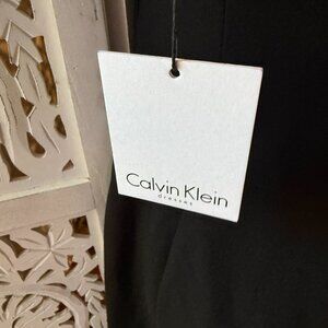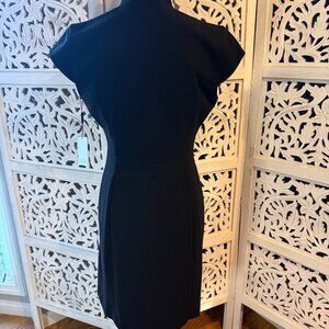 NWT Calvin Klein Black Cap Sleeve V Neck Wrap Dress Side Embossed Buckle Sz 4