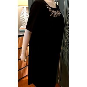 NWT Calvin Klein Black Dress with Rhinestone Floral Spray on Bodice-Dillard's-Size 16 Woman