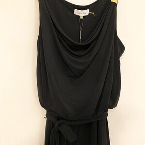 NWT Calvin Klein Maxi dress with relaxed chest portion and gold cuffs on the straps. Black fabric belt. Size M day, casual, work, spring, summer, fall.