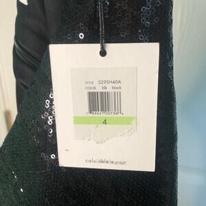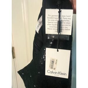 Brand new with the tags, Calvin Klein black sequin skirt. Straight cut, hits at the knee or just below. Back zipper/hook & eye closure, fully lined, hand sequined.