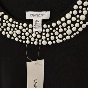 NWT Calvin Klein Black Sweater Pearl Studded Collar Detail Lightweight Size M