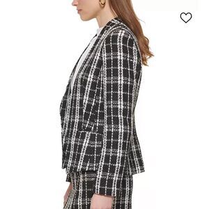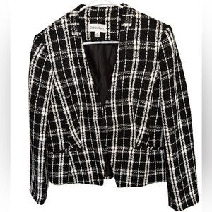NWT- Calvin Klein- Black & White Tweed Open Front Blazer Jacket, Plus Size 14