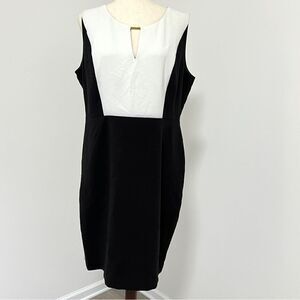 NWT Calvin Klein Black White Color Block Sheath Sleeveless Dress 14