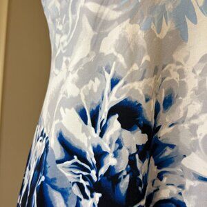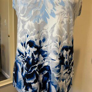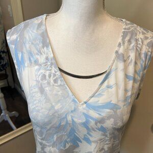 NWT Calvin Klein Blue & Gray Floral Print Hardware Embellished Top, Size Medium