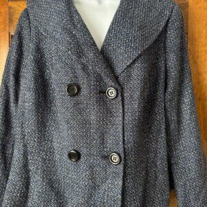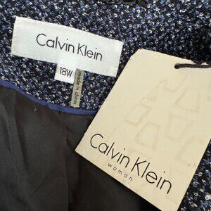 New with Tags; Calvin Klein; Jacket; Blue Iris; Size 18W; Double Breasted Button Close; Fully Lined; Shell 78% Acrylic & 22% Polyester; Lining: 100% Polyester; Dry Clean; Armpit to Armpit 25"; Armpit to Hem 12"; Sleeve 17"; Length 26"