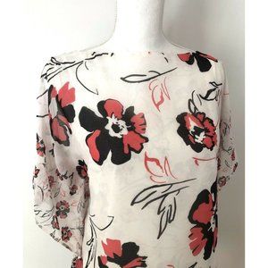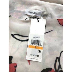NWT Calvin Klein Chiffon Kaftan Blouse Size S White Floral Print Tunic Top