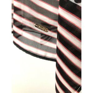 Light and airy, this Calvin Klein chiffon kaftan blouse is the perfect piece to elevate your look. Designed with a relaxed tunic fit, it features bold floral prints, striped hem accents, and draped flutter sides for effortless movement and style.