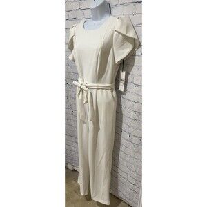 NWT Calvin Klein Cream jumpsuit with a tie waist And Gold Zipper Back Size 10
