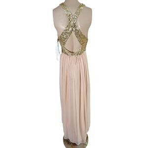NWT w imperfections. Beautiful chiffon layers and gold sequins is reminiscent of old Hollywood glam.