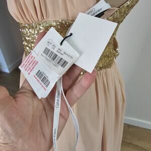 NWT Calvin Klein Dress Nude Flowy Chiffon Layers Soft Sheer Goddess Ballet 10