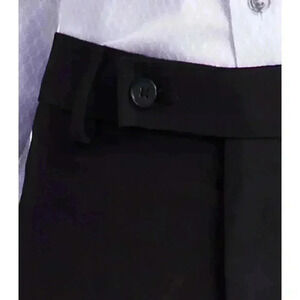These are new with tags and in the box Calvin Klein men's black dress pants. They are made of a blend of polyester and rayon and have a slim fit. The pants have a button closure and a zipper fly. They also have two front pockets and two back pockets. The pants are in excellent condition and have no visible imperfections. The size is 32x32.