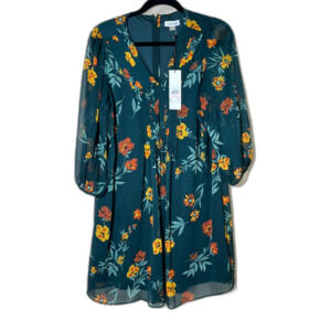 NWT Calvin Klein Forest Green Boho Cottagecore Dress Peasant 10 MSRP $129