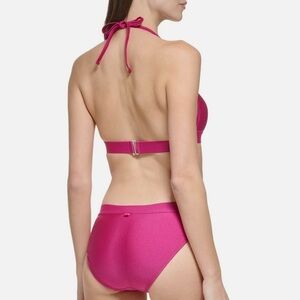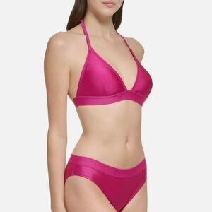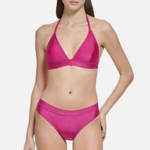 Vibrant fuchsia bikini by Calvin Klein. Halter top with matching bottoms.