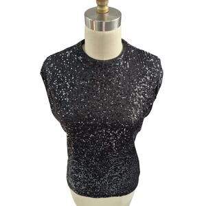 NWT Calvin Klein Fully Sequined Black Poly Spandex Top Shell Zipper Back Sz S