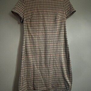NWT Calvin Klein Herringbone Check Print Ponte Short Sleeve Shirt Dress Size 8