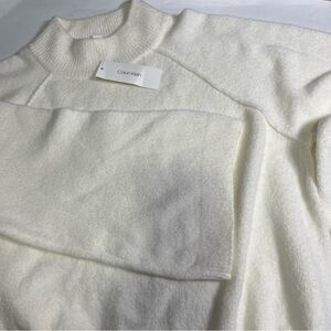 NWT Calvin Klein Ivory Mock Neck Sweater, Wide Arms, XL