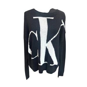 NWT Calvin Klein Jeans Womens Black White Oversized Soft Cozy Logo Sweater M Y2K