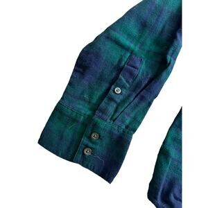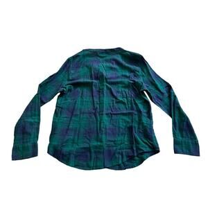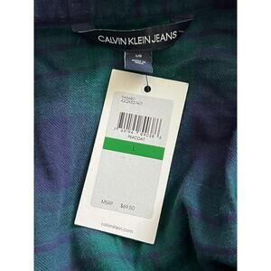 NWT Calvin Klein Jeans Womens L Blue Green Checkered Button Up Blouse Collarless