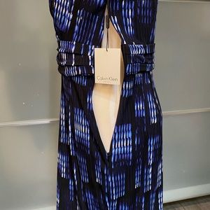 This is a new, unworn, Calvin Klein knit dress. Hidden side zip. Flattering cut. Comfortable stretch knit. Top is fully lined. Bottom is not see-through so no slip required.
