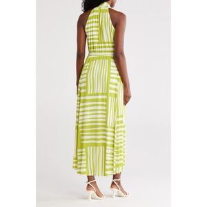 NWT Calvin Klein Knot Front Sleeveless Maxi Dress Abstract Print in Celery White