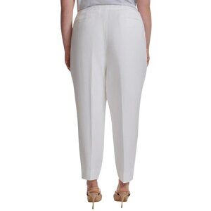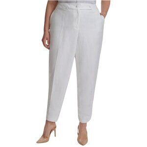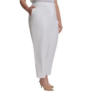 NWT Calvin Klein Linen-Blend Straight Slim Leg Side Slit Hem Ankle Pants White
