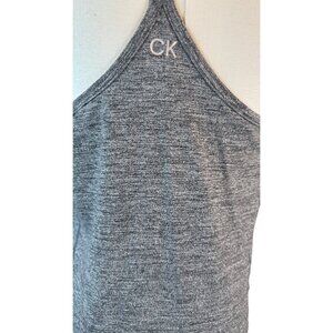 Calvin Klein dress, racerback dress, athletic dress, performance dress, moisture-wicking, casual dress, activewear, workout dress, polyester spandex, lightweight dress, gray dress, CK logo dress, medium size dress, strappy dress