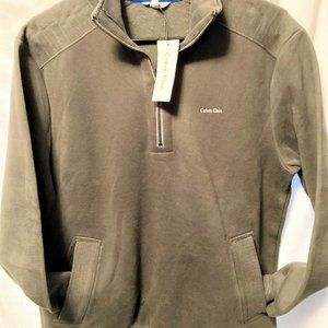 Mens Calvin Klein Fleece jacket half zipper and pockets Men size Medium. NWT . It is a cross between olive green and grey very difficult to get the color right in photos but it looks more grey to me. . Approximate measurements, Across chest underarms 22", Shoulder 6", Sleeve 29", Total length down back. 30". DISCOUNTED SHIPPING!! Please ask any questions you may have. Thank you.