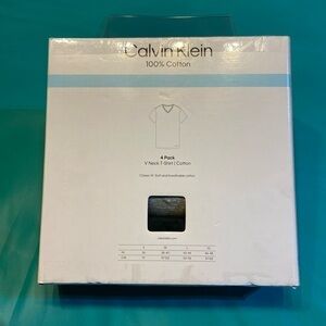 NWT Calvin Klein Men`s Cotton Classic Fit Short Sleeve V Neck T-Shirt, 4-Pack.