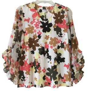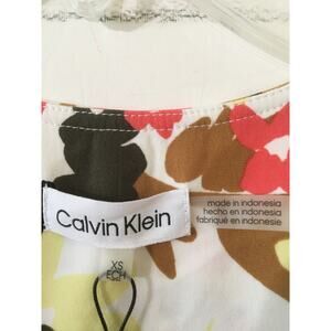 NWT Calvin Klein Modern Essentials XS V-neck Sheer Ruffled Hem 3/4 Sleeves Top