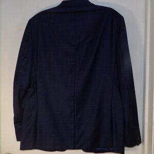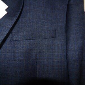 navy colorway , new with tags , side pockets and one breast pocket will need stitching removed before they are functional , two button center front closure , 3 inner pockets one of which buttons closed , 100% Stretchable Wool , 4 buttons on cuffs are non functional , Sz 44R measurements are roughly 30" from shoulder to hem and about 22" pit to pit with a sleeve length of 26" , Condition Is New With The Tags & Never Worn or Washed No Issues To Note , Pet friendly non smoking home
