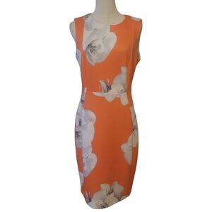 NWT Calvin Klein Orange Sleeveless Floral Sheath Dress Size 10