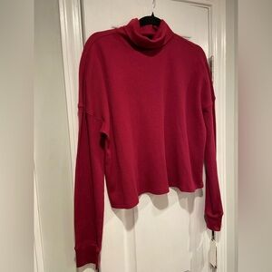 Dark red wine burgundy long sleeve pullover waffle knit turtle neck top shirt