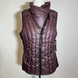 NWT Calvin Klein Performance Maroon Quilted Puffer Vest Funnel Neck Womens Large