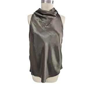 NWT Calvin Klein Polyester Satin Shell Top Funnel Neck Olive Green Sz XL