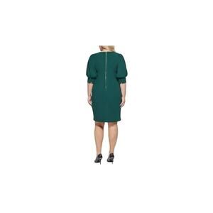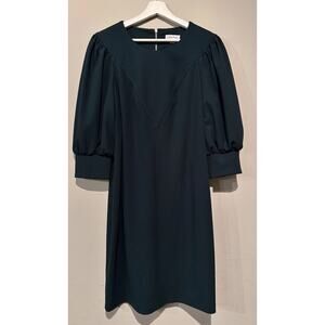 NWT Calvin Klein Puff Sleeve Sheath Dress Green Knee Long Women Size 14 Holiday