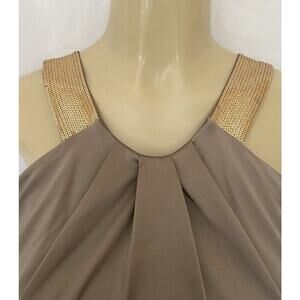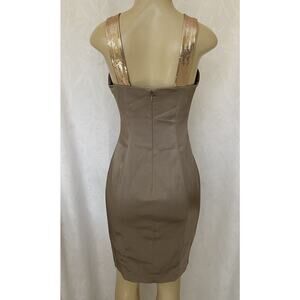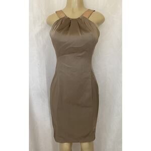 NWT Calvin Klein Sheath Dress Metallic Sleeveless Sequin Oatmeal Satin 4…
