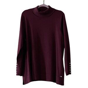 NWT Calvin Klein Solid Turtle Neck Long Sleeve Sweater w/ Button Detail Sleeve