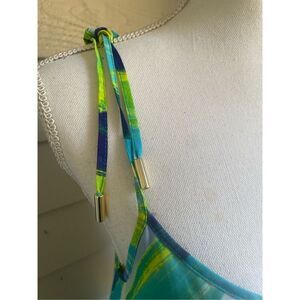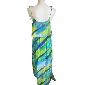 NWT Calvin Klein Spaghetti Strap Maxi Dress Blue/ Green Size 6 ruffled layer