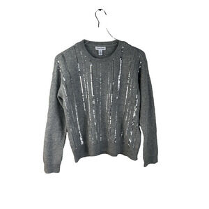 NWT Calvin Klein Sweater Womens Small Gray Sequin Crewneck Long Sleeve