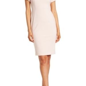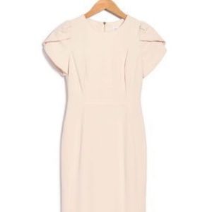 Calvin Klein Tulip sleeve, short sleeve sheath dress. In pink color name Petal.